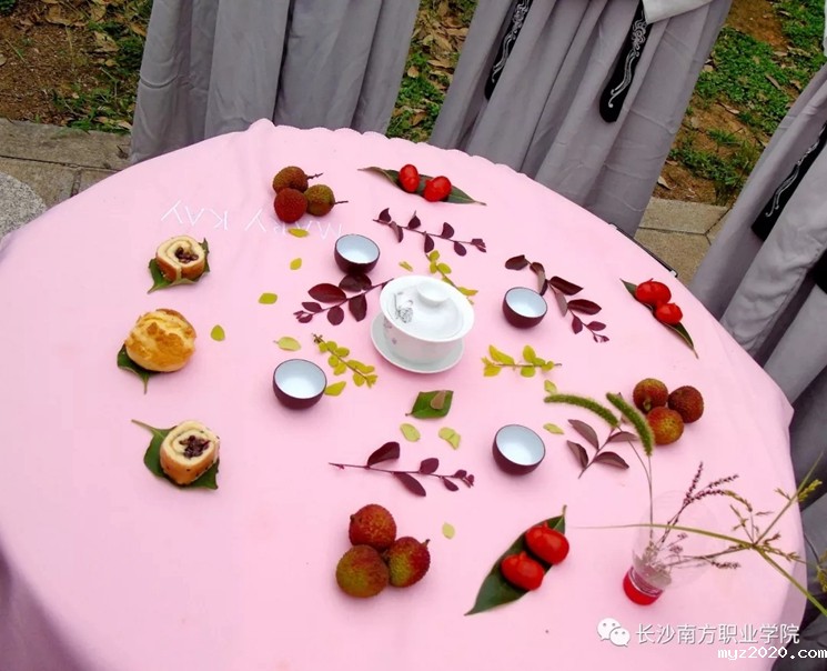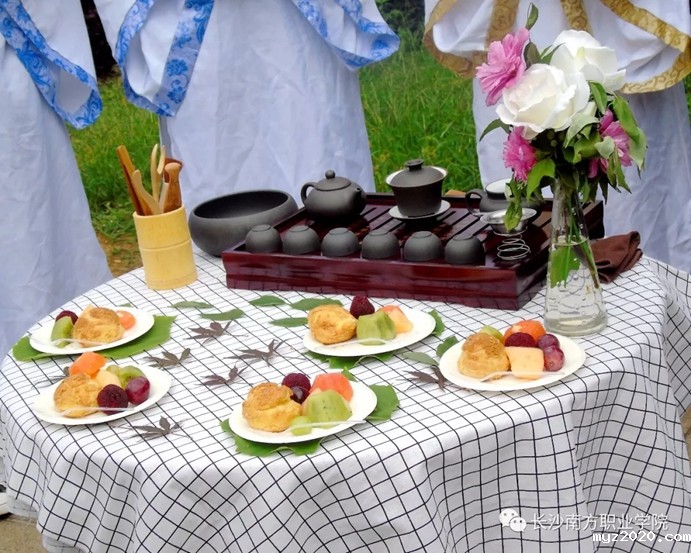 2018年6月,基础教学部文综教研室主任尹文偈老师在学院环形教学楼喷泉处举办了别开生面的室外公开课——《中国传统技艺——茶艺》。此次开设茶艺课程并展示的专业为航空服务系高铁乘务专业,主题为茶席的设计并辅以茶艺、茶韵的展示。同时,学院督导、系部领导受邀出席。