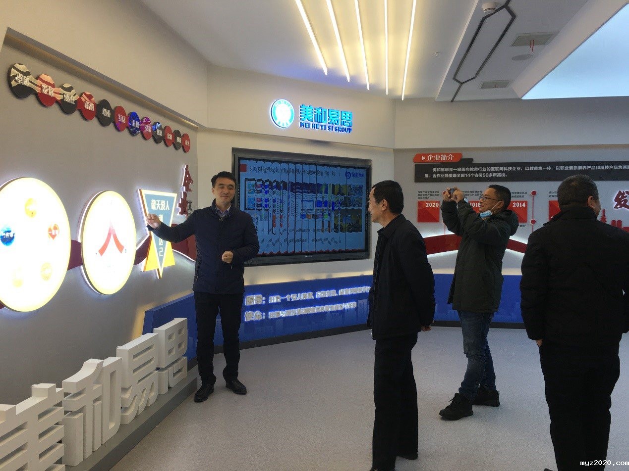 2020年12月4日下午,我院副院长王金以及后勤处长王庆云在美和易思湖南区域总监吴章涛的陪同下赴湖北美和易思教育科技有限公司交流研讨。湖北美和易思教育科技有限公司(以下简称:美和易思)董事长兼总裁海克洪、党支部书记兼常务副总裁郭梁、副总裁张永龙负责接待。交流研讨会在美和易思厚德会议室举行。