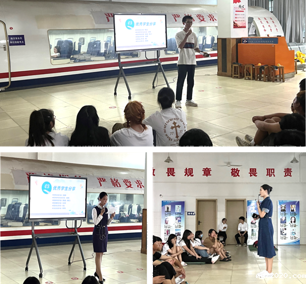 学长和学姐的亲身经历和专业技能更带来震撼。南方职院首批“南职工匠”何胜颖同学用丰富的经历和荣誉获得学生的阵阵掌声;专升本已上岸的张剑锋学长用自己“宝剑锋从磨砺出”的经历让部分同学已经埋下了继续求学的种子;南方航空贵宾接待员张维莹同学分享了工作中的趣事和坎坷;对于无法到场的乘务员代表颜俊豪、谢盛兰同学,安检员代表蒋思雅同学、民航客运员代表谢玉同学,采用云对话的形式与新生交流感想。