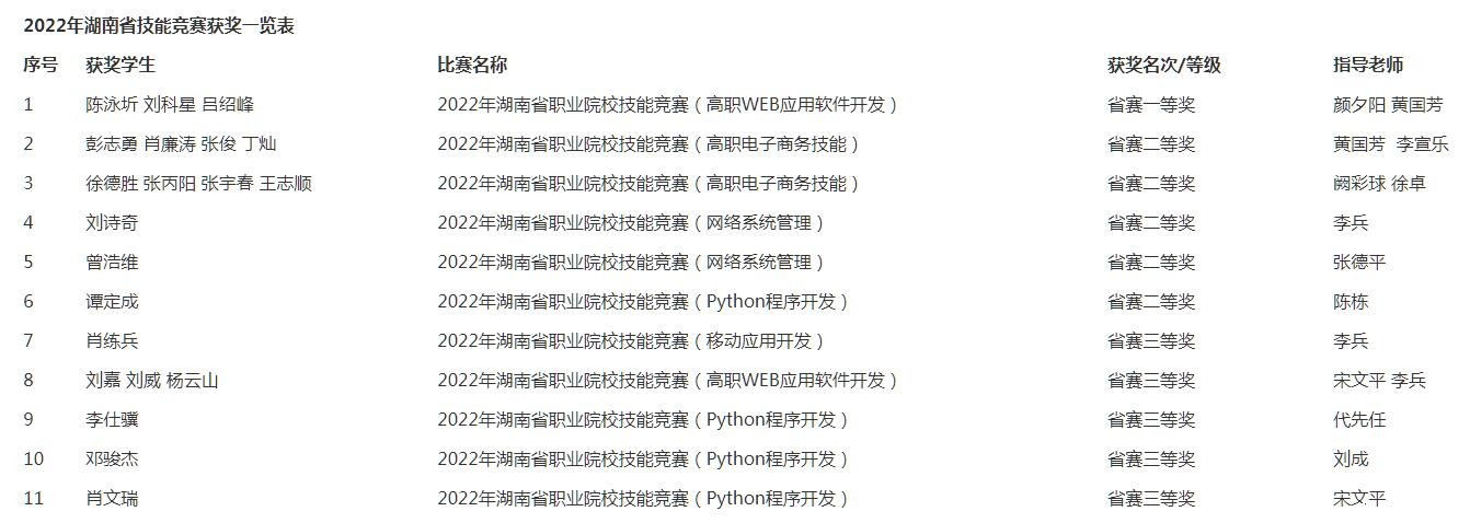 2022年“楚怡杯”湖南省职业院校技能大赛(高职组),信息工程系派出16支队伍参加6个项目的比赛,共获一等奖1项、二等奖5项、三等奖5项的好成绩。