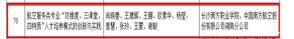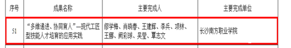 2022年6月19日,湖南省教育厅发布了《关于公布2021年湖南省职业教育省级教学成果奖获奖成果的通知》(湘教通〔2022〕165 号)。 我院肖晓春副教授主持的《 航空服务类专业“双维度、三课堂、四特质”人才培养模式的创新与实践》、宋文平副教授主持的《三全育人背景下“四融三促两向”高职软件技术专业人才培养研究与实践》、缪学梅副教授主持的《“多维递进、协同育人”—现代工匠型技能人才培育的应用实践》等项目均获得三等奖。