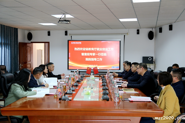 政府督导、校党委书赵小群主持会议并讲话校长肖晓春从党建领航、产教融合、全员参与、精准帮扶等方面就学校近年来落实就业创业工作的主要措施、工作成效及特色亮点等向专家组作情况汇报。