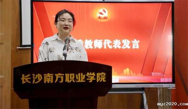 表彰先进熊晓钰作教师代表发言。回顾了入职以来的成长经历及教学、科研、参赛心得。她表示,作为一名党员教师,要时刻牢记“为党育人,为国育才”初心,扎根岗位一线,不断创新工作方法、锻炼业务技能、提升职业素养,时刻以饱满的热情投入到人民教育事业中去,潜心育人,立德修身,以实际行动践行人民教师“传道、授业、解惑”这一庄重而伟大的历史使命,做“四有”好老师和“四个引路人”,为培养担当民族复兴大任的时代新人而努力奋斗!