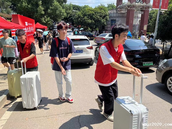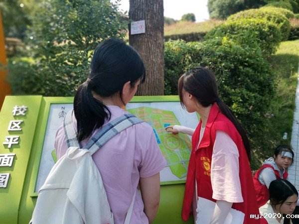 学校门口、篮球场、宿舍楼共设置迎新服务点4个
