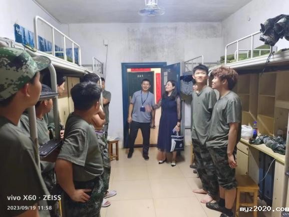 在新生宿舍里,项林主任亲切地询问每一位新生的情况,询问他们是否想家,是否适应军训等,在了解到有学生来自于海南、安徽、四川等地后,项林主任叮嘱他们要经常和家长沟通,多和家里报平安,同时一定要注意安全,有任何问题要及时向教官和辅导员老师反映。