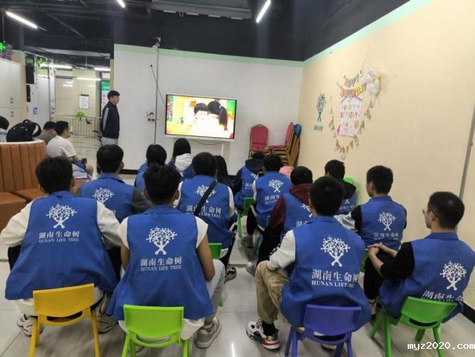 志愿者们到达湖南生命树自闭症儿童关爱中心后,关爱中心的老师组织志愿者们观看相关纪录片,促使他们对小朋友有更深入的了解。