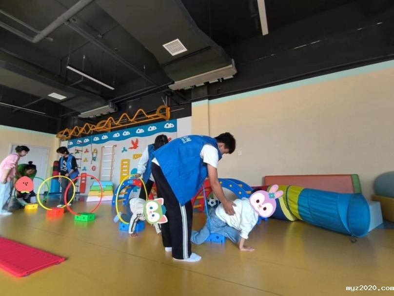随后,志愿者们开展了语言与沟通课、感统课,帮助孩子们进行语言交流能力康复训练。通过在游戏中使用各种教具,帮助孩子们更好地理解和控制自己的感知系统,提升孩子们的感知能力,进而增强他们的社会适应能力。